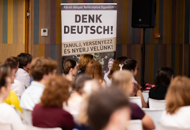 A Károli Junior Akadémia és a Német Nyelv és Irodalom Tanszék közös szervezésében a 2025/26-os tanévben immár negyedik alkalommal kerül sor egyetemünkön a Denk Deutsch! német nyelvi verseny döntőjére. A háromfordulós versenyen idén több mint 400 középiskolás vett részt az elmúlt hónapokban. A tavalyi évtől a református iskolák mellett állami és más egyházi felekezethez tartozó középiskolák is indulhattak a megmérettetésen.