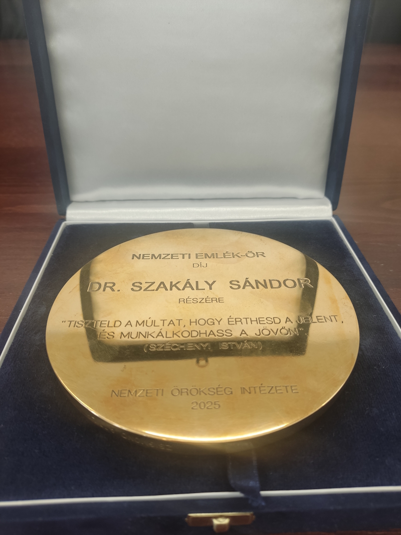 Dr. Szakály Sándor Széchenyi-díjas történész, egyetemi tanár a hadtörténeti munkássága és intézményvezetői feladatainak kiváló ellátása mellett a 21. századi magyar emlékezetkultúra terén is maradandót alkotott. Megalakulása óta tagja a Nemzeti Kegyeleti Bizottságnak (2006-tól Nemzeti Emlékhely és Kegyeleti Bizottság), 2021-től elnökhelyettese. A Bizottságban végzett negyed évszázados munkája során rendkívül sokat tett a nemzet kiválóságai sírjainak védetté nyilvánítása, azaz a nemzeti sírkert kialakítása, valamint a nemzeti és a történelmi emlékhelyek hálózatának létrehozása érdekében. Különösen nagy részt vállalt az arra érdemes magyar katonák és sportolók emlékének megőrzésében, a hősies magyar katonai múlt ápolásában. A Bizottság üléseinek aktív tagjaként számos szakvéleményt fogalmazott meg, rendszeresen vállalt emlékbeszédet, emlékművek létrehozását javasolta, támogatta. Személyesen is szorgalmazta a Fiumei úti sírkert kiemelt módon, állami szinten megvalósuló kezelését, illetve kezdeményezte a Nemzeti Örökség Intézete létrehozását.