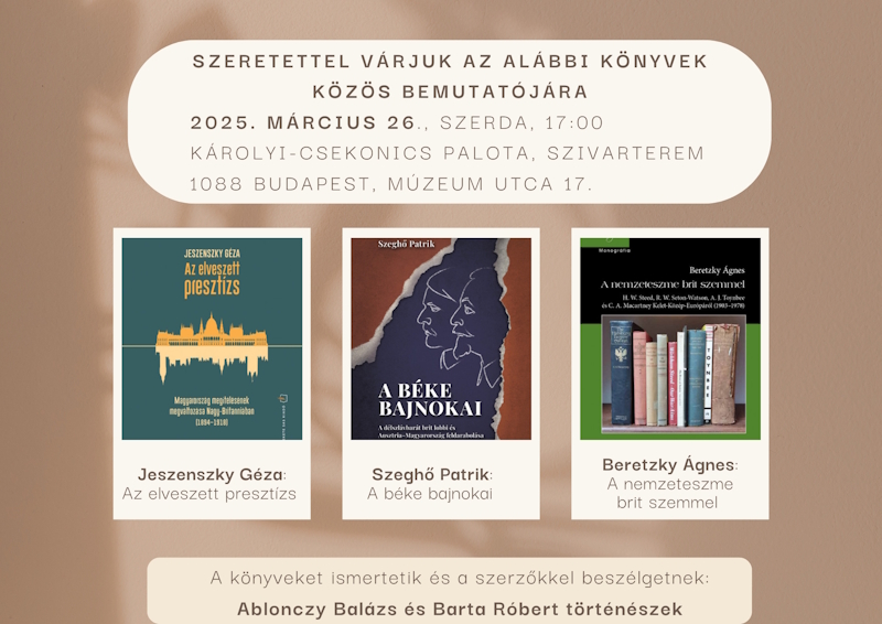 A köteteket ismertetik és a szerzőkkel beszélgetnek: Ablonczy Balázs és Barta Róbert történészek.