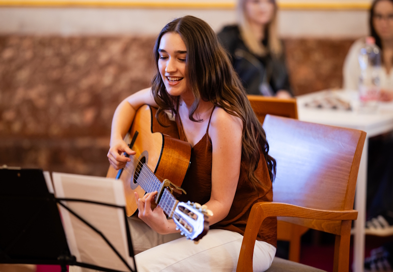 A döntőben 28 csapat, összesen 84 középiskolás mérte össze tudását, felkészültségét. A diákok az írásbeli tesztfeladatok megoldása után szituációs játék formájában interjút készítettek a német nyelvű zenei élet egy-egy jeles – kortárs vagy klasszikus – képviselőjével.