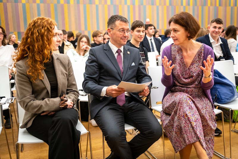 2025. április 17-én zajlott a harmadik „Denk Deutsch!” német nyelvi verseny döntője, melyet jelenlétével megtisztelt Thomas Widmer ideiglenes ügyvivő úr, Svájc helyettes nagykövete, Miriam Bruns asszony, a Goethe Intézet igazgatója, Renate Seib asszony, az Osztrák Kulturális Fórum igazgatóhelyettese és Dr. Trippó Sándor úr, a Goethe Intézet szakreferense.