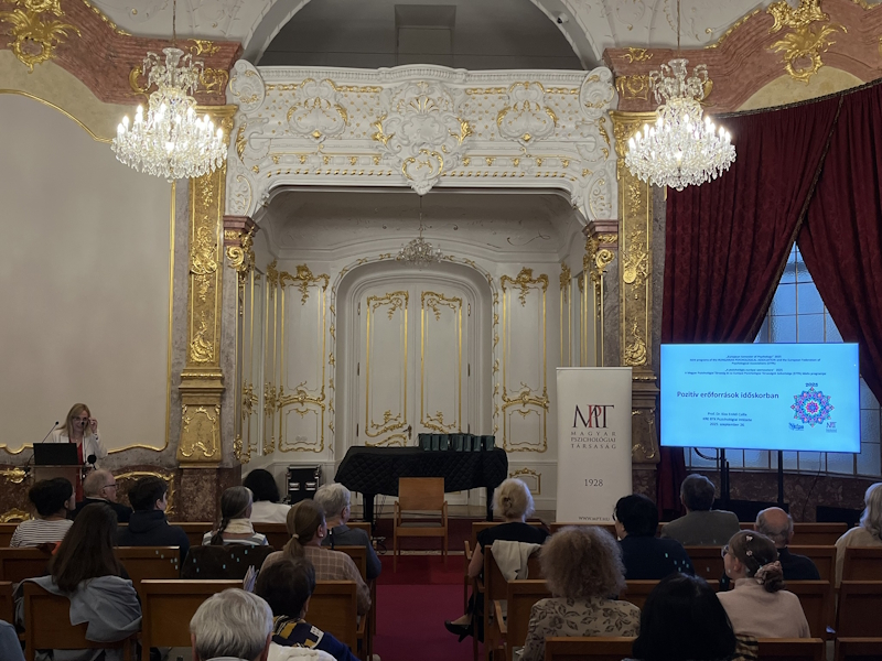 2025. szeptember 26-án a Károli Gáspár Református Egyetem impozáns Károlyi-Csekonics Palotájában került megrendezésre az „Időskor új megközelítésben” című mini-konferencia. A mini-konferencia része az úgynevezett European Semester of Psychology programsorozatnak, amelyet a European Federation of Psychological Associations (EFPA) ebben az évben a Magyar Pszichológiai Társasággal együttműködve Magyarországon rendez. A program Prof. Dr. Fülöp Márta, a Magyar Pszichológiai Társaság Nemzetközi Titkára, a Károli Gáspár Református Egyetem Pszichológiai Intézetének egyetemi tanára szakmai koordinálásával jött létre. A rendezvény iránt rendkívül nagy érdeklődés mutatkozott: a résztvevők soraiban egyaránt jelen voltak kutatók, gyakorlati szakemberek és hallgatók, idősekkel foglalkozó civil szervezetek képviselői, idős és nyugdíjas érdeklődők, akik mind a tudományos tartalom, mind a szakmai párbeszédek színvonalát kiemelkedőnek ítélték.